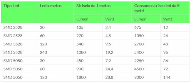 Ciao, forza con i led, consumano poco e fanno TANTA luce. Tutte balle! Sapete quanto consuma una strip led? Forse no, visto che qualcuno si lamenta della bassa tensione in arrivo. Allora guardate questa tabella: sieteancora convinti del poco assorbimento? Sappiate che i led 5630, e 5730 consumano ancora di più... cercate quanto... io ho paura a scriverlo... 73 de
