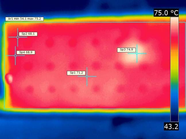 Per il tema pannelli flessibili discusso in precedenza: nel forum tedesco un utente ha pubblicato questa foto termica del pannello flessibile che stava sul suo tetto, temperatura esterna trenta gradi.