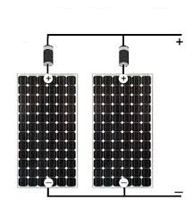 Il montaggio è molto semplice, vedi lo schema qui sotto: Per collegare in parallelo due pannelli servono due diodi i cui catodi vanno collegati tra di loro. Il componente che vi è stato proposto contiene i due diodi coni catodi già collegati tra di loro. Non resta che collegare i cavi positivi dei pannelli con i terminali laterali del doppio diodo e collegare il terminale centrale con il regolatore. Tutto qua