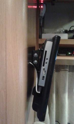 Hai pensato a metterla in un pensile/mobile per poi estrarla all'occorrenza a 1/2 di supporto scorrevole, sicuramente l'ì dentro sarà stabile e sicura specialmente in viaggio