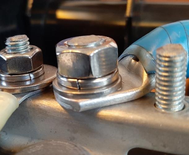 In realtà, sui poli positivi delle due batterie servizi ho già messo questi: i cui cavi vanno al commutatore da 200Amp a quattro posizioni (OFF/BS1/Bs2/Bs1+Bs2). Sul polo di massa di una delle due Bs arriva un cavone concapocorda dal telaio (per il ritorno dalla BM) + un cavone di massa per il parallelamento delle due Bs più alcuni fili con capicorda meno importanti che collegherei sui due bulloncini da M6. Però i capicorda grossi avrei preferito collegarli a un bullone più robusto tipo M10 o meglio M12. Grazie, comunque. Luciano