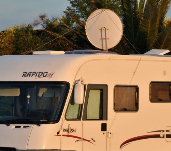 In questi venti anni di camperismo, oltre 330.000 chilometri, visti in dettaglio tutti i Paesi dell'ex Europa dell'Est (eccetto Islanda), non mi era mai capitato di vedere questa parabola manuale. Il tizio ha alzato la parabola tramite le corde e, come si intravede dalla foto, le ha fissate lateralmente. Vedeva sicuramente la tv perché quando si è fatto buio dalle finestre del camper trapelava il classico sfarfallio della immagini televisive in un locale buio.