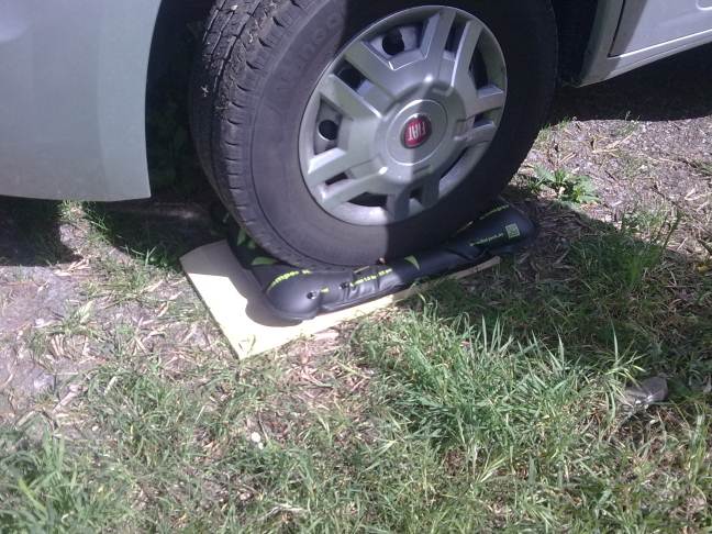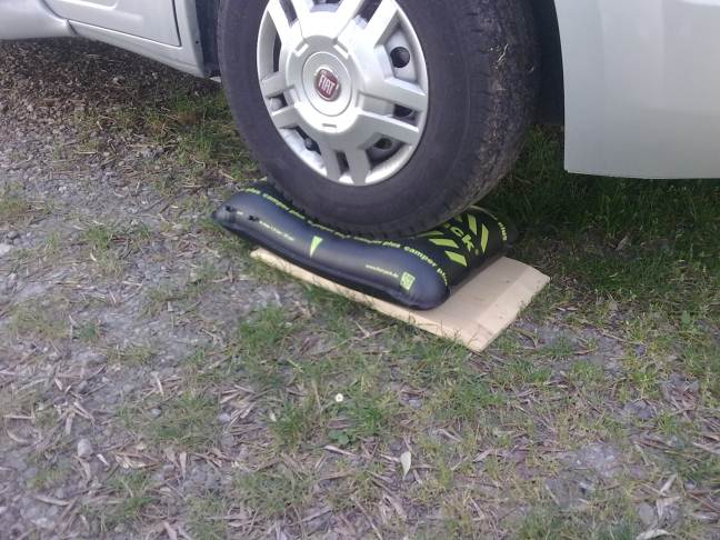 Ho visto in questi giorni sotto un camper di tedeschi questi....cunei....sono in pratica dei cuscini confiabili che vanno posto sotto le ruote sgonfi e poi con un compressorino gonfiati al livello desiderato li avete mai visti in vendita? Tiziano che cosa sto facendo? niente, ma lo sto facendo molto bene