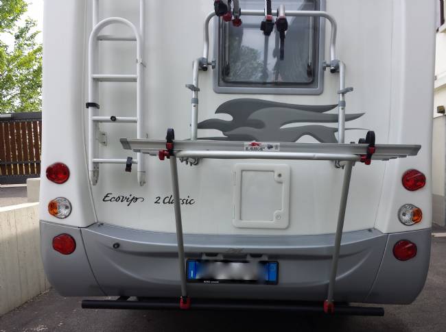 Stanco di cinghioli&Co, l'ho fissato con un braccio della Fiamma che mi era avanzato, che poi smonto perchè me ne hanno già rubato uno... ...e ho supportato lo sbalzo del portabici con due tubolari e pezzi vari dei bracci Fiamma. Michele Il diritto di ognuno si ferma dove inizia il rispetto per gli altri.