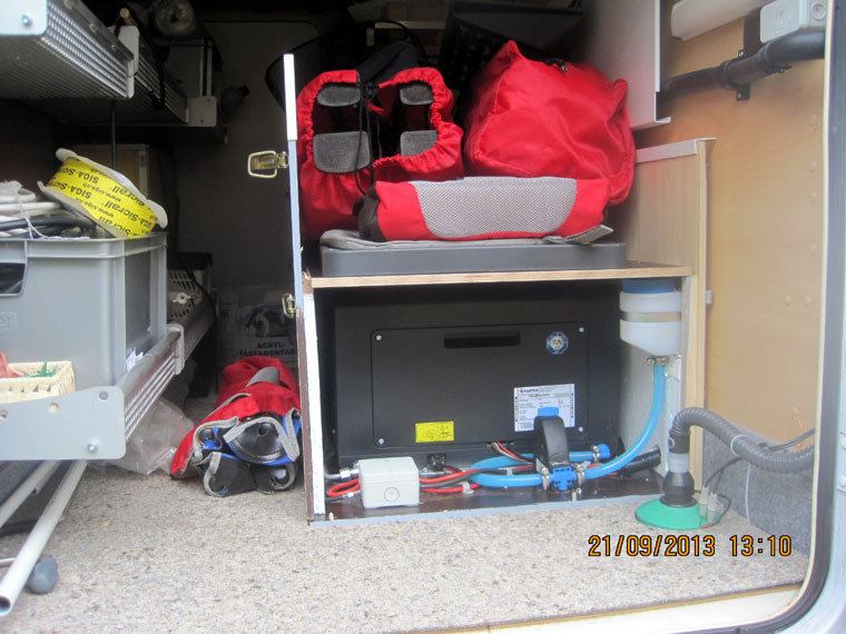 quote:Risposta al messaggio di lgcv inserito in data 07/12/2013 18:02:45 (Visualizza messaggio in nuova finestra)>> è arrivato finalmente. [:0][:p] non ci speravo più. http://www.truma.com/it/it/energy-systems/vega-fuel-cell-system.php da quel che ho appena letto sul sito truma e in un forum tedesco: pesa 40 kg, trasforma gas e acqua distillata in corrente (20A a 12 V che non è affatto poco, si potrebbe far andare il frigo trivalente con un inverter a 230 V con questa corrente per evitare di avere la fiamma del frigo accesa ad esempio in nave) e costa 7000 euro. se ne facessero uno che pesa 1/3 di quello che ora vendono, che fornisce 1/4 della corrente di quello che ora vendono e che costasse la metà di quello che vendono ora penso lo comprerei abbastanza subito se funziona bene e se non ha costi di manutenzione eccessivi. ha bisogno di una batteria di almeno 100 Ah perchè prima di creare corrente ha bisogno di corrente. dopo 1000 ore di funzionamento bisogna farle un servizio. il tedesco del forum da cui proviene la foto sotto ha sostituito l'efoy con il vega truma perchè l'efoy stava sotto il letto e faceva un rumore che lo disturbava di notte mentre col truma dorme bene ma non è totalmente silenzioso. la valvola dell'acqua distillata si apre a 0 gradi e fa uscire l'acqua distillata per non farla congelare.