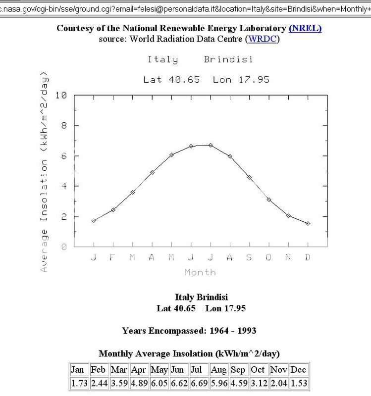 L'energia emessa dai pannelli sarà proporzionale a quanto disponibile in estate, seconbdo questi coefficienti.