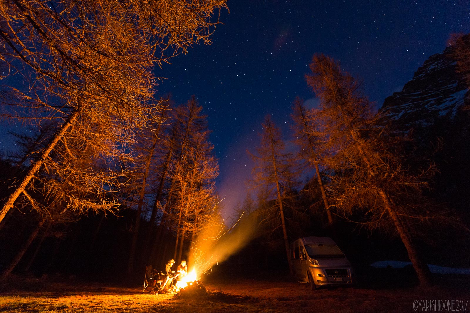 Si anche un amico mi aveva detto di fare attenzione, soprattutto all'inizio. Mi aveva detto di scaldarla lentamente senza buttarla di botto sul fuoco, però sono un poì' di volte che la uso ed è ancora perfettamente integra.La striscia Led deve illuminare, non essere bella, poi se uno vuole fareil precisino può metterla meglio, ma la panza brontolava, avevo altro da fare in quel momento :D Ahhhh, quando si parla di fuoco si passa subito per pazzi criminali furiosi che come minimo si meritano l'ergastolo! ah ah ah Io faccio il fuoco spesso, se posso ed è sicuro. Quella valle è famosa per il campeggio selvaggio, tant'è che spesso d'estate mi capita di vedere decine di fuochi lungo tutta la valle. Il fuoco unisce, crea atmosfera, lo usi per cucinare e poi per scambiare racconti di viaggi e avventure con un buon bicchiere in mano. Non c'è niente di male. Ho alzato la struttura di pietre proprio per renderlo sicuro. Simo il 4: rabbrividire? addirittura? A me foto simili fanno solo venire voglia di avventura! Te ne intendi di fotografia? Pensi che davvero quel fuoco fosse alto 3 metri da terra? in tal caso secondo te io e la mia ragazza saremmo potuti stare a mezzo metro dalle fiamme? Ti rispondo io, direi di no visto che non sono cannibale e non mi voglio mangiare Chiara! ;) Paolobitta51: immagino tu vada alla ricerca dei post di questo yarighidone per criticarlo sempre e comunque :) Io non invito nessuno ad incendiare i boschi, sono anni che li accendo d'estate e non sono mai stato responsabile di foreste bruciate. Il rispetto della natura prima di tutto. Prova a passare il weekend in compagnia di amici davanti al fuoco invece di criticare sempre e comunque, scoprirai un mondo meraviglioso! Roca: perchè sprecare gas quando ho un combustibile naturale a disposizione? Sopratutto in questo periodo c'è un bosco da ripulire dai rami caduti durante l'inverno, e poi come ho detto prima il fuoco, oltre a scaldare, crea un'atmosfera meravigliosa... gattosilvestro: ah ah vero! Ma era la prima volta, spero di scontare qualche anno di pena in meno... :D DonLimpio: quella la prossima volta, per ora uso la Truma! :D Ciao a tutti! Il mio blog di avventure: