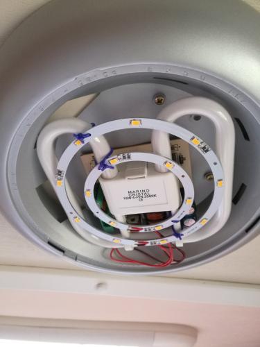 Io ho due plafoniere e le ho modificate come vedi in foto. Ho usato due anelli led presi su ebay. Del precedente impianto non ho rimosso nulla. Ho fissato gli anelli led al neon usando dei lacci di plastica di mia figlia.Son due anni che sono lì senza problemi. I due anelli insieme fanno 8w invece dei 14 del neon. Non sarà un lavoro fantastico ma con il poco tempo a disposizione posso accontentarmi. Tempo dell'operazione, 15 min a plafoniera.