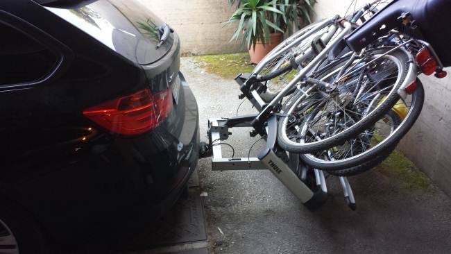 Io ne ho uno molto più economico mi pare si chiami peruzzo siena, per tre bici, lo trovo molto pratico, sicuramente quello della thule sará fatto meglio.
