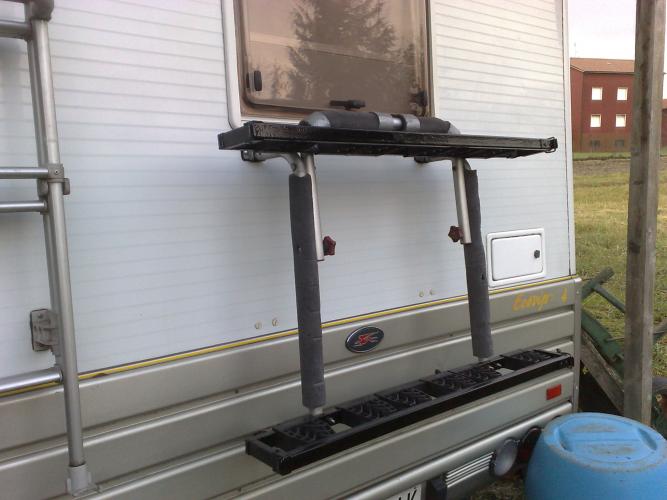 Ottima idea...forse ci vorrebbe un omologazione? Se ti fermano e vedono quel coso non so se ti fanno la multa o se ti vola via uno sci...un porta sci non è uno stendino per i panni