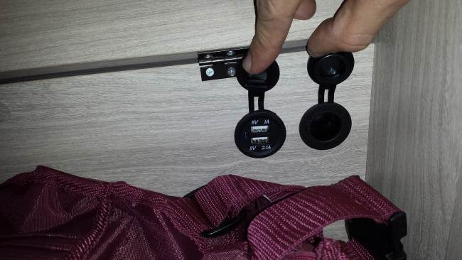 Ho installato questa presa USB della CBE, per ricaricare cellulari. Uscita 5v 1000mA Ho provato a vedere se assorbe senza carico e c'è un minimo assorbimento a vuoto di 5mA Secondo me un simile assorbimento ci metterebbepiu di un anno a scaricare la BS quindi mi sembra abbastanza poco da poterlo considerare trascurabile e quindi non mettere un interruttore che mi complicherebbe non poco le cose. Peccato che ho visto solo ora che esiste anche la versione doppia e con maggiore corrente Tommaso IZ4DJI www.iz4dji.it
