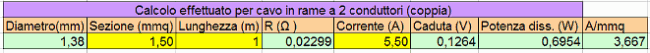col cavo doppio da 6 mm2 quanto si perde per metro in wattaggio ?