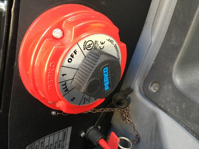 Ho un piccolo problema ma spero mi possiate aiutare. Ho due batterie Green Power da 120A l'una collegate in parallelo secco con "deviatore" manuale a 4 posizioni (Off, 1, 2, All). Foto del deviatore: