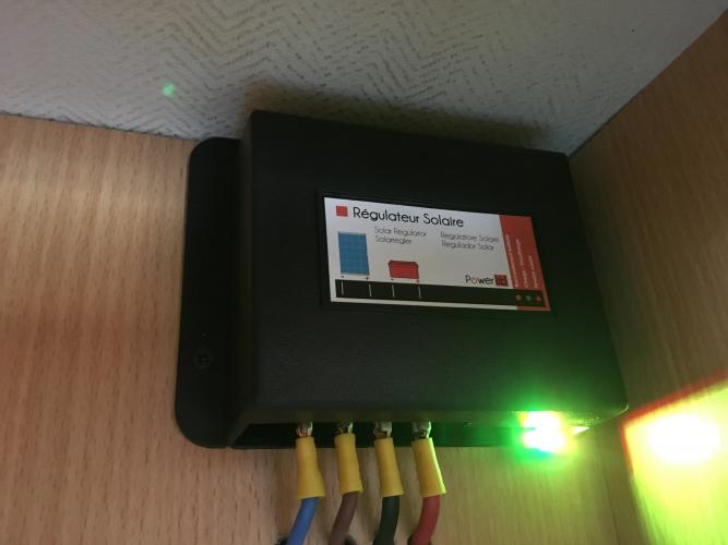 Ho deciso di far montare un pannello solare (110w mono) che ho preso in kit con il suo regolatore. Foto del regolatore: