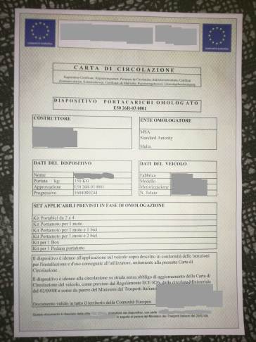 Quindi,Alfa, dimmi se ho capito bene, ....se io faccio montare un porta moto da una officina competente ed autorizzata,che rilasci una dichiarazione scritta che il montaggio è stato fatto secondo tutti i cerismi europei...ecc..ecc , non ce bisogno di riportarlo sul libretto giusto?