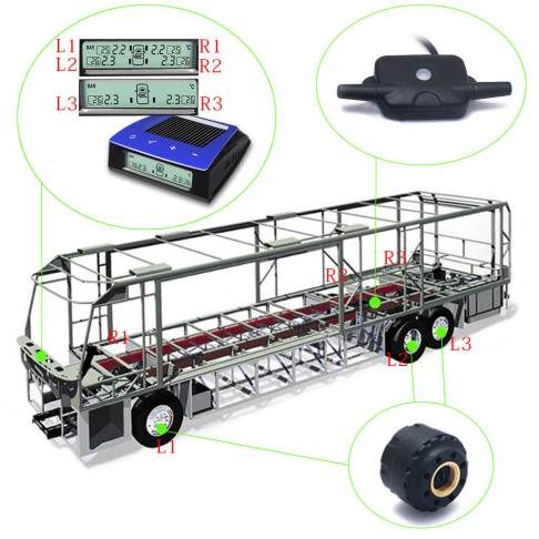 L'avevo scritto qualche pagina addietro, il modello per veicoli a 6 ruote esiste solo nella versione solar, ha colore blu e costa circa 120-130€. Il costo maggiore si giustifica per la presenza di 6 sensori, il pannellinosolare, e un display abbastanza grande, dove però vengono visualizzate solo max 4 ruote alla volta. Le posteriori si alternano e vengono visualizzate come da foto allegata di significato evidente: Naturalmente non fa differenza che le ruote posteriori siano gemellate o che ci sia un terzo asse. Affinché corrispondano le icone del display con le gemellate conviene mettere i sensori L2 e R2 su quelle interne e i sensori L3 e R3 su quelle esterne. Non ce l'ho ancora, però conto a breve di prenderlo. Ciao da Dash