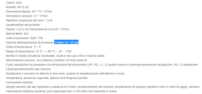 Ciao, confermo quanto scritto da hatan63. Possibilità di sceglere gli allarmi per ogni singolo asse, e la pressione massima ammissibile fino a 9 BAR. Riguardo alla spedizione non mi è andata nè bene nè male. Sapevoche la dogana la passava senza problemi. Cìò che viene dichiarato sulla baja serve un po' per pararsi il lato B. Compro abbastanza spesso in estremo oriente, finora non ho mai pagato un centesimo di dogana. Sanno fare le confezioni da spedire in modo che non vengano intercettate dai doganieri. Con le spedizioni ci campano, se ci fossero i dazi doganali avrebbero terminato di fare business. Disolito diciarano: campione omaggio, oppure materiale surpluss... ecc... Un esempio: anni fa ho acquistato in Cina un paio di sonde per oscilloscopio, quando si aveva paura a mandar soldi in estremo oriente. Ebbene, sulla confezione era dichiarato in lingua inglese: corde per chitarra... Il pacchetto con il carchet mi è stato consegnato dentro due buste, una dentro l'altra, da documenti e plichi. Quelle che usano i corrieri internazionali. P.S. l'unica volta che ho pagato la dogana, è stato per un componente radio usato proveniente dagli Stati Uniti. Più di tre mesi per riceverlo a casa. Il vecchio proprietario non aveva dichiarato nulla sulla confezione.