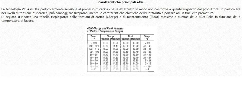 Ciao Paolo, per ottimizzare la carica di una batteria P/A libero o AGM, puoi impostare il PRS240 su Piombo / Gel, elevando la tensione di fine carica a 14,3V. Buoni chilometri a tutti!
