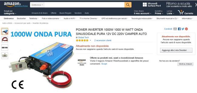 Io penso che spendere tanto per un inverter che viene usato saltuariamente non sii il caso... capirei se fosse utilizzato 24/24h.... Io consiglio questo: Io ho preso lo stesso modello però da 1000W; provato con caricoda 550W (trapano) e nessun problema anche a regime impulsivo... nel mentre era collegato all'oscilloscopio per verificare l'onda nelle diverse condizioni di utilizzo; e posso confermare che l'onda è pura. (recensione fatta su amazon) L'inverter ad onda modificata è vivamente sconsigliato se si alimenta un carico induttivo (esempio: motori), perchè per un breve periodo l'onda è continua... quindi ci sono buone probabilità di far saltare le apparecchiature. Il Fai Da Te a Opera d''Arte