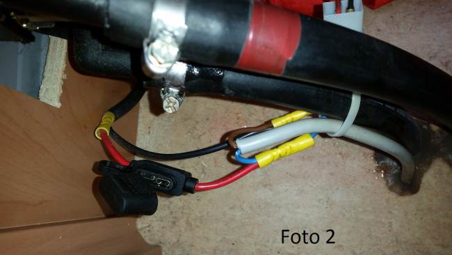 una derivazione (tramite le guaine gialle) che porta la 12V alla presa accendisigari al fondo della dinette.