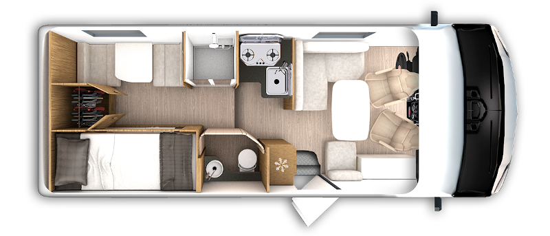 Mica vero? Se facciamo un resoconto storico delle piante dei camper si troverebbero molte decine di distribuzioni diverse. Ad esempio oggi se vuoi comprare un Hymer puoi scegliere tra letto nautico, gemelli o trasversale.Basta, nulla più. Idem per Laika che ha le stesse disposizioni dell'Hymer con solo tre modelli diversi. Uno con servizi posteriori, ma sempre con letti gemelli, un mansardato con letti a castello e un matrimoniale longitudinale. Questo su 45 modelli a listino. A proporre un po' di novità, un qualcosa di alternativo, sono le case emergenti o che comunque devono conquistare quote di mercato e quindi puntano a qualche novità. Non hai torto quando dici che lo spazio è quello e quindi in 8 m2 non puoi avere lo spazio di 20 m2 ma ci sono alcune distribuzioni che veramente danno un'altra impressione di spazio disponibile. Come ho detto, ad esempio io trovo molto interessante una disposizione del genere Dove sia in due che con i bambini si ha molto spazio. Non solo, in caso di coppia con figli i bambini hanno una loro zona durante il giorno per poter stare in camper. In caso di una coppia invece si hanno spazi per potersi isolare nel caso si dovesse lavorare. E tutto questo in sette metri. Peccato che la qualità del camper non sia al livello degli altri, senza doppio pavimento e con materiali ancora vecchio stile (se non erro hanno ancora travi di legno nella struttura.