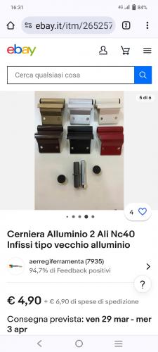 In risposta al messaggio di freeval del 27/03/2024 alle 19:20:57Non voglio convincerti...viste un foto sembrano semplicissime cerniere da infissi... per me con un minimo di manualità e qualche attrezzo quelle su eBay o simili le trovi facile e, sono adattabili facilmente.