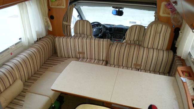 Ciao Plinio, attenzione a usare quel tavolo: io ho un MH con una disposizione variabile, posso cioè usare la dinette sia a L che a divani contrapposti, effettivamente la disposizione a L è molto più ariosa purtroppo non la uso spesso perchè i due longaroni trasversali della base del tavolo sono molto ingombranti e non consentono di avvicinare il tavolo ai divani risultando quindi scomodo per mangiare e inoltre ingombra quasi tutto il corridoio. Sto cercando anche io di usare sempre la L e finora la soluzione migliore è quella realizzata da un amico con il piano del tavolo su cilindro a sua volta montato su di una specie di rotaia che aumenta la possibilità di spostamento.