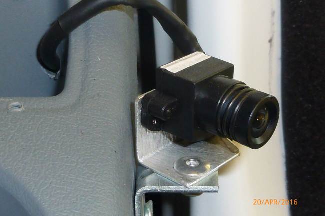 Ho usato queste micro camere; questa è montata sul cruscotto lato passeggero per vedere chi arriva, specie nelle confluenze, quando lo specchietto non è sufficiente.