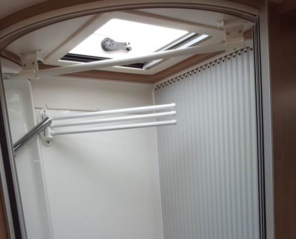 Ho messo i ganci che usa la Hymer, per averli uguali, nella parete della doccia, ma in alto a poca distanza dal soffitto, dove l'acqua non arriva visto che la doccetta è piu in basso. Tommaso IZ4DJI www.iz4dji.it