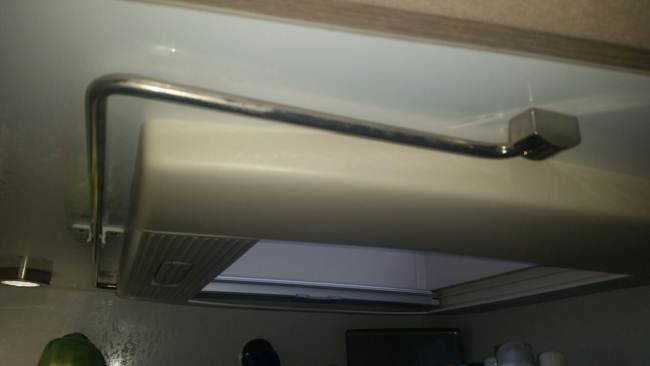 Qui si vede un po' meglio: Credo che sia di misure standard per oblò da 40x40, ma è difficile reperirlo in rete. Se provi presso qualche concessionario credo non sia un problema farselo ordinare. Per il fissaggio a soffittoquesto non è un grosso problema. Credo tutti sappiate che intorno all'oblò il soffitto è rinforzato,e che quindi è in grado benssimo di supportare i pochi kg dei api appesi con le quattro viti che vedete (2 per supporto). Se poi invece volete usare la barra per apenderci i salami e i prosciutti, allora effettivamente è meglio che lasciate perdere, non vorrei che vi cadesse il cartone sulla testa, vi fate mae e poi mi chiedete i danni. Ciao