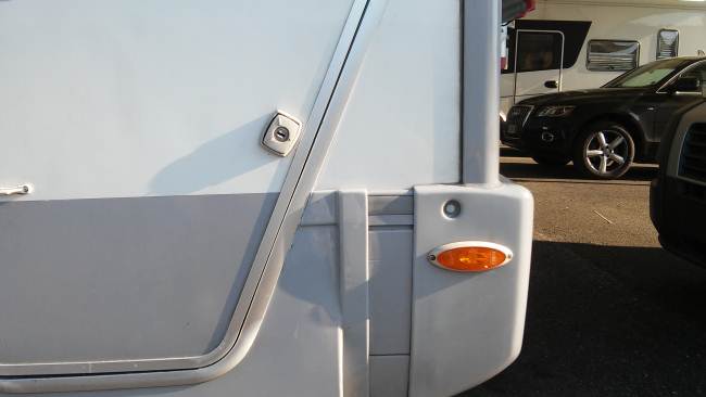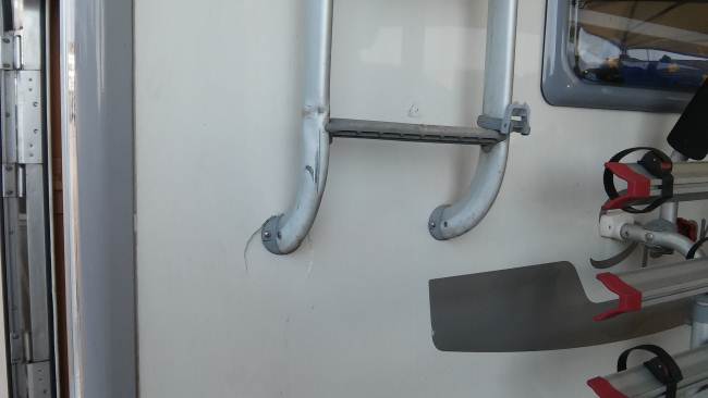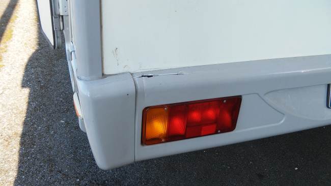 Come nel più classico de copioni, laddove le cose son facili e ripetitive.... si fanno i danni. Ho centrato un palo al rimessaggio, facendo una manovra fatta centinaia di volte. I danni come visibili nellefoto sono: - buco nella vetroresina causato dalla scaletta (e relativo interno al mezzo) - rottura paraurti, piegato un supporto facilmente raddrizzabile - piegato pure leggermente la cornice del gavone Ho appurato che non ci sono danni strutturali dovuti al colpo su paraurti, il colpo lo ha preso ed infatti lo ha ben sentito la cornice del gavone ma guardando bene in tutti i punti non rilevo danni. Probabilmente la struttura ha assorbito elasticamente l'urto e ne ha risentito la sola cornice del gavone che è rimasta leggermente piegata. Provvederò a far valutare il tutto da chi di competenza, per valutare come procedere. Non so però se provvederò a riparare il tutto subito a regola d'arte. Ovvero, se il problema paraurti è solo estetico posso rammendare il tutto alla bell'e meglio ed al momento tenerlo così. Per la vetroresina posso farla riparare a regola d'arte oppure tamponare fino alla fine della stagione: la frattura è ben definita, potrei rattopparla con vtr, funzionalmente ok ma esteticamente visibile , a costo zero. Anzi, magari solo resina nella frattura per l'esterno e toppa dall'interno. Per il danno interno (rivestimento e travetto) non è un problema, ripristino al meglio io senza fretta. Ok, questo è ciò che ho in mente. Ora vengo al motivo del post: in zona BG qualcuno di voi ha un riparatore da indicarmi? 'onesto e che lavori bene' mi par scontato.... Avete altri consigli o suggerimenti a cui non ho pensato? Ciao e grazie