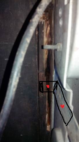 No, in effetti la foto non è chiara. La rimetto disegnando sopra il pezzo di ferro che ho smontato (nero) e la vite che c'era in origine (rossa).