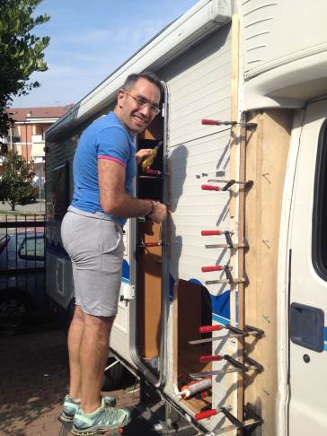 Si cerco di darmi da fare,sono un in ritardo con i lavori ho solo fino a fine mese e ho ancora 3 infiltrazioni da risolvere più un cedimento nel pavimento,spero non sia infiltrato pure quello.Il problema è che sono soloe mi sta passando anche un pò la voglia poichè devo fare i conti con il materiale che sul mercato classico è standarizzato,quindi,magari,rallento per costruire un'attrezzo per ovviare ad un'inconveniente tipo i pannelli di polistirene da assottigliare di 3mm, ingegnarmi per pressare le pareti senza punti di forza(ci perdo un sacco di tempo),lottare con la colla che inspessisce in poco tempo.............che fatica.Un giorno mi ha dato una mano un mio collega,quello della foto,e i lavori procedevano spediti ma ora non può più.Il camper è un CI su ducato, 1900cc un pò vecchiotto è del 2001,meccanicamente in buone condizioni e vorrei mantenerlo tale,ci va impegno... baffo6871