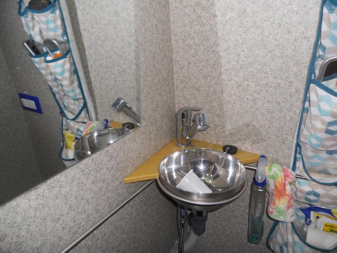 ciao x il mio sempre in autocostruzione e 6 metri fuori tutto e i letti gemelli il bagno ne ha sofferto tanto che ho rinunciato alla dinette e omologazione x due persone , il mio lavandino in bagno? una ciotola x insalataforata e usata appunto come lavandino . ho pensata anche al tipo che si alza ma fa da poco . doccia senza problemi ma x asciugatura apro la porta ,e stessa cosa anche x mia moglie . tavolo dinette e quello del bagno . calcola comunque che in 5 anni ho fatto la doccia in camper x 5/8 volte , resta il fatto che TU fai libera e il discorso è diverso . saluto anche EMME 48 . carlo
