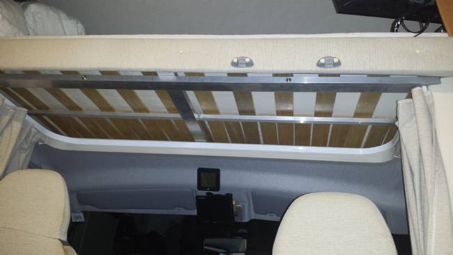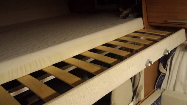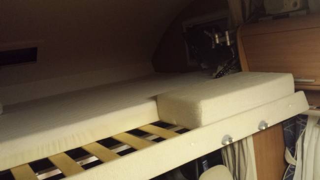 Secondo me l'idea è buona, lo sbalzo è di 50/60 cm quindi non esagerato e di facile tenuta. Sono un pochino perplesso sulla effettiva bontà d'uso per salita e discesa, ovvero non è che per dare maggiore comodità a unose ne rende scomodini due? Mi pare di aver visto anni fa soluzione simile: letti longitudinali in mansarda con allungamento separato e spazio centrale: si scendeva e saliva di lato, dava meno disturbo. Comunque il concetto mi sembra valido ma, come molte cose vantaggiose e valide proposte nel tempo, di poco successo. Costi quel che costi ma l'estrosa (sinonimo di stramba) mente camperistica vuole le cose fisse, trovare tutto pronto, troppo disturbo perdere un minuto per preparare un letto. Bruno