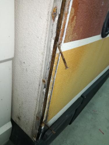 guarda che se togli le bandelle ,carter di plastica nera,dietro ci sono le viti! se ti sembra che sotto la parete sia libera significa che anche il pianale è marcio e le viti non tengono +