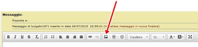 Quando apri la finestra per inserire l'argomento, clicca sull'icona qudrata, poi Carica quindi Aggiungi un'immagine e segui le istruzioni (di fatto ti chiede la posizione in cui si trova l'immagine che vuoi inserire) La selezioni ed il gioco è fatto Seguimi su