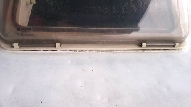 Dovrei siliconare un lato dell' oblo del basculante, e rifare una vecchia sigillatura fatta o dal proprietario precedente o dal rivenditore vicino alla porta lato guida.