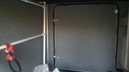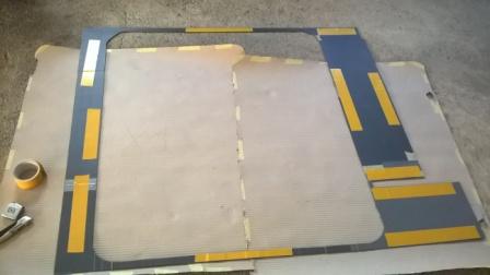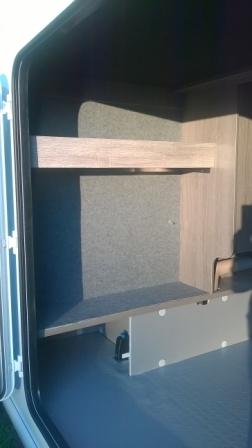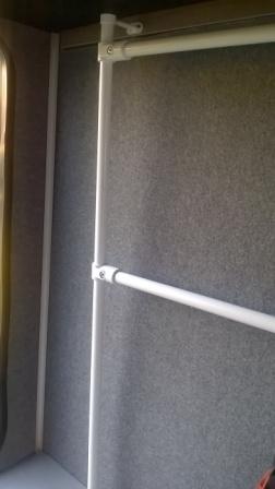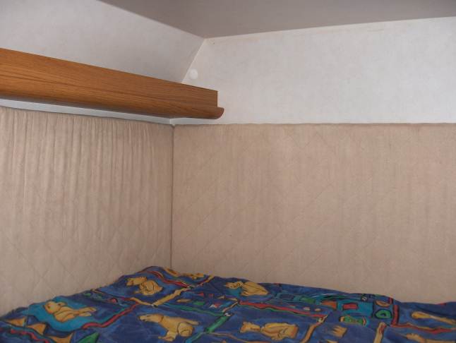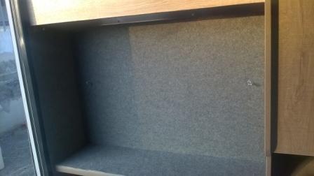 a tutti i pro e contro ho deciso di creare un rivestimento che fosse asportabile. Ho fissato la moquette a pannelli in pvc leggerissimi chiamati polionda con del biadesivo e colla e fissato questi pannelli alle pareti con velcro adesivo in pochi punti visto che il lavoro, realizzato con dima precedente, è venuto preciso e i pezzi, unici per ogni parete, andavano gia' ad incastrarsi bene.