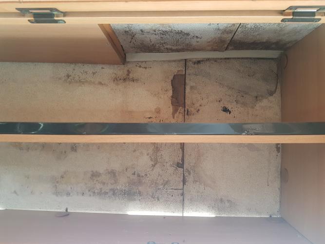 Salve a tutti, premesso che sono stato davvero un pollo allego le foto della sorpresa che ho trovato quando il camper è diventato mio e ho aperto tutti i pensili che erano chiaramente ADESSO stati vuotati dei vestitidel precedente proprietario e ho sollevato la carta che era stata bene bene stesa nei tre pensili tra la mansarda e il forno/scaldavivande... Se qualcuno ha dei suggerimenti da darmi...aspetto che piova per vedere che succede...appena staccata la carta le pareti erano umide ma già il giorno dopo erano asciutte. Ho contattato il precedente proprietario e non mandandolo neanche a quel paese mi ha detto che già 4 anni fa quando lui l' aveva acquistato la situazione era quella...vabbè stendiamo un velo pietoso ma ripeto il pollo sono stato io! Saluti Vitello