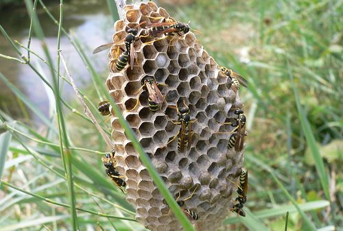 le prime sono le normali vespe, le seconde le vespe muratore, anche qui da me ce ne sono dappertutto, e io sono allergico, se mi pungono ci potrei lasciare le penne