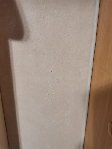 Potrebbe essere un difetto del compensato nobilitato. Nel mio camper ho il compensato nobilitato tipo simile al tuo e in un punto è tutto ruvido effetto come muro graffiato.