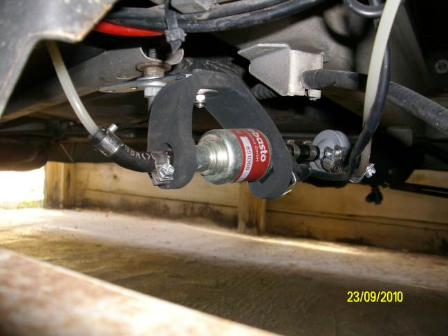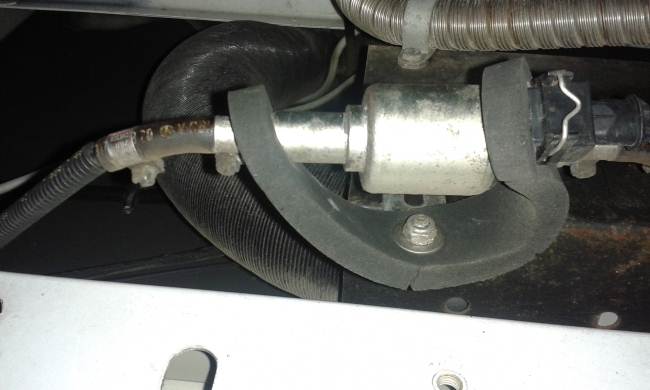 sono riuscito a fare una foto, avrei voluto fare qualcuna più da lontano ma non è facile questa è sottosopra, non riesco a girarla si vede la pompa con il supporto in gomma che è spaccato e poi non inquadrato il tubo che è fissato al telaio con fascette in plastica; Pasquale.