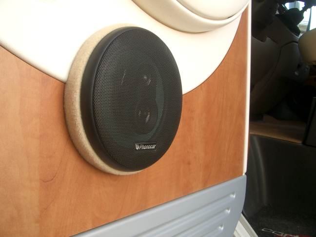 Più che avanti bisogna leggere i post del passato Puoi mettere anche altoparlanti da 165 mm. Per il DX devi allargare il foro con un seghetto alternativo stando attento ai tubi. Per il SX dei realizzare uno spessore circolare sagomato e rivestito. Se vuoi esagerare metti anche un subwoofer. Soluzione Phonocar Soluzione Alpine