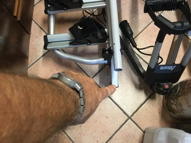 Il portabici non ha mai toccato terra quando dovevo aprire i portelloni, carico o scarico non cambia, magari da carico tocca meno ma comunque non fa passare la porta.. non abbiamo confrontato direttamente i due portabicima ho provato il suo sul mio camper ed era ok, ovvero permetteva l'apertura (completamente scarico) anche se per pochi mm. Andrò a mangiare una pizza in camper una sera cosí.....