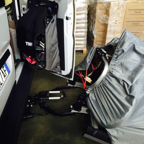 Credo che montando leggermente storto il portabici, dovresti riuscire ad aprire completamente almeno una delle due porte (lo avevo visto fare in Germania e solo adesso capisco il perchè..).