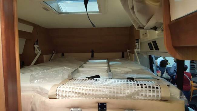 Font Vendome: Novità H307, basculante elettrico e matrimoniale in coda, purtroppo, come in molti mezzi francesi, è presente l'assurda panchetta appena si apre il portellone scorrevole, che quindi comporta, oltre al grandescambio termico/pioggia d'inverno e notevole apporto di zanzare d'estate, l'arretramento della cucina che confina direttamente con il matrimoniale posteriore e la quasi totale rinuncia ad un armadio che si possa definire tale. Sono arrivato da pochissimo nel mondo dei furgonati e per ora ne sono felicissimo. Siamo ormai in 3 (escludiamo che nostra figlia grande voglia passare ancora vacanze con noi e anche il più piccolo di 15 anni verrà con noi solo per il classico viaggio estivo) ...non sono stato a parma ma mi sono documentato su internet e dopo aver visto di persona la soluzione doppio matrimoniale posteriore (assolutamente non gradita dalla moglie) abbiamo optato per la soluzione con la famosa panchetta sul portellone...Che dire secondo la mia modesta opinione è proprio la soluzione vincente !! finalmente ho una dinette in cui si sta seduti anche in 6 (prima nel mio Hymer da quasi 7 metri con dinette tradizionale si faceva fatica a cenare anche in 4 ) e a parte la scomodità di fare il letto la sera (3 minuti di orologio) si ricava un letto davvero comodo e sufficientemente lungo per il metro e 75 del pargolo; Inoltre si può guidare lasciando il letto montato. Questa problematica delle zanzare che entrano io l' ho risolta con 10 euro di tendina a scorrimento che fermo con dei velcri (siamo stati in zone abbastanza infestate ed è andata abbastanza bene - basta stare accori con le luci ;) ) ...poi il discorso dello scambio termico lo dovrò ancora sperimentare (l' ho appena preso ma non ci andrò sulla neve ) ma mi sembra un falso problema a fronte di una distribuzione che personalmente trovo molto funzionale di respiro e anche economica (leggo che questi nuovi mezzi con basculanti e tetti alti stanno a cifre da motor home ormai. Sarei voluto venire a Parma, poi non ho potuto (forse in parte avevo anche paura di confrontare il mio acquisto e magari pentirmi) comunque leggendovi ho capito di aver fatto la scelta giusta (anche e soprattutto per quanto riguarda il rapporto resa prezzo) e che tutto sommato il mio mezzo del 2011 non ha poi così tante cose da invidiare a mezzi che costano esattamente il doppio.