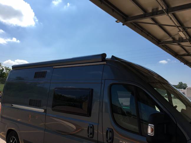 Il mio Kiros ce l'ha di serie. Una striscia a led lunga quanto lo sportello. Fa una luce molto superiore a quella che vedo anche su camper non furgonati e ci fa mangiare fuori la sera quasi con la stessa luce che dentro.