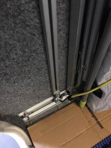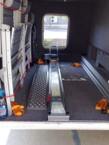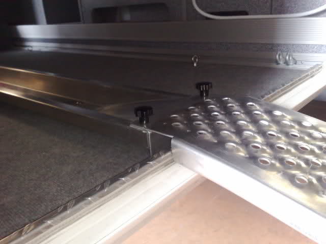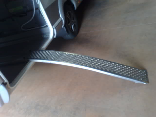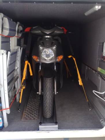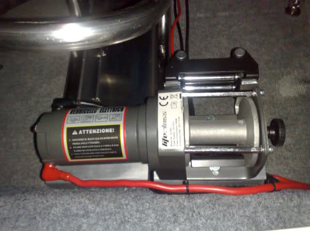 Ciao Francesco domande: La piastra ha uno spessore di 2 mm, invece la rampetta interna è di 3 mm? canala di alluminio dello spessore di mm2 piegata per ottenere la un ottima resistenza una volta piegata questo spessoreè sufficente mentre per la rampetta ho utilizzato 3mm perchè più sollecitata dal peso dello scooter Il ferma ruota, l'hai sempre fatto fare o comprato? su mio disegno l'ho fatto realizzare da un artigiano con la piegatubi Tutta la struttura, con il verigello (che è fermato sulla rampa) e solo appoggiato sul pavimento del garage oppure l'hai fermato con qualche vite sul pavimento? fissata al telaio AL-KO posto sotto il pavimento con 4 bulloncini M8 INOX come da foto Invece del cavo in acciaio, con conviene usare una fune, che dovrebbe pesare di meno del cavo? Sto valutando la sostituzione con le fasce omologate per vericello Il collegamento del vericello, è fisso oppure usi una presa da 12 v.? Fisso con relativo fusibile di protezione Simon722