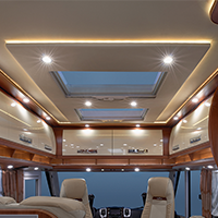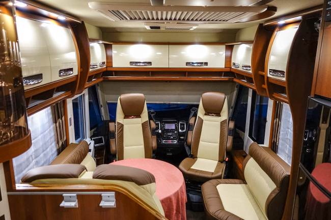 un attimo di relax alle 17,30 si entra in guerra che dire è proprio bello Coloro che viaggiano in coppia, può essere in chic e-line / s-plus l'ora di nuove versioni con un ambiente di vita molto particolare: alternativaal letto di sollevamento standard è ora disponibile su richiesta, un salotto-variante senza sollevare letto, ma con tutti intorno in esecuzione pensili a in l'area della cabina interna. Due grandi portelli tetto panoramico e l'illuminazione indiretta riflettono la cabina di guida perfettamente in salotto con un. Così, grazie a una altezza di 212 centimetri dà una sensazione di spazio - il salotto è la casa dei sogni. non deve mancare l'elettronica di consumo appropriate: Lo schermo TFT opzionale cresce in chic e-line / s-plus a 32 pollici. Il TrioMare